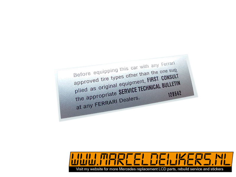 Ferrari approved tires decal information 128542 decalSame size, colors, fonts like the original.Suits the Ferrari Testarossa.and others from the same periode