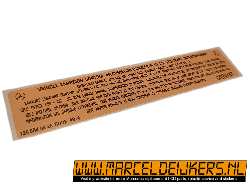 Sticker which replace the old sticker with partnumber: 1265840426 / 126 584 04 26 vehicle emission control information