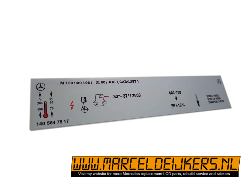 Sticker which replace the old sticker with partnumber: 1405847517 M120.980 / 981 (E60) engine decal W140 C140 R129 W210