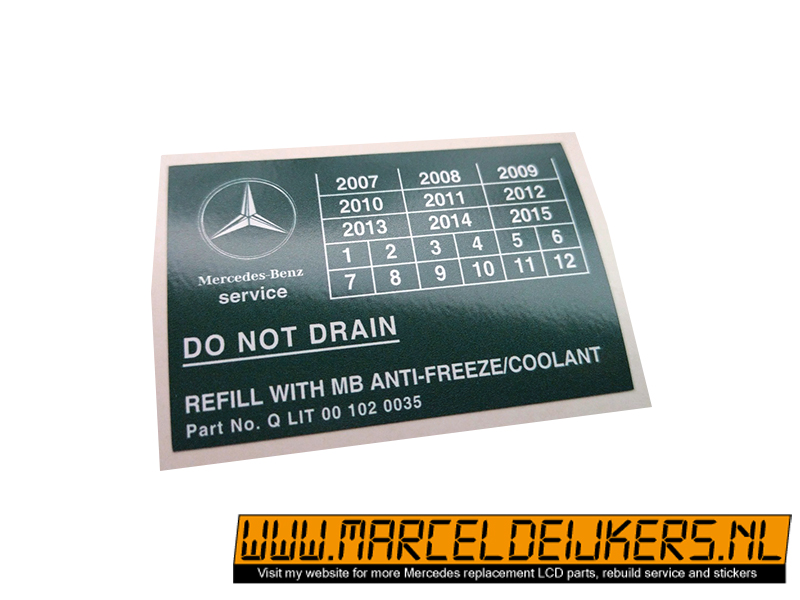 This sticker has been reproduced in the same sizes, shapes and colors to match the old original one which is NLA at mercedes.