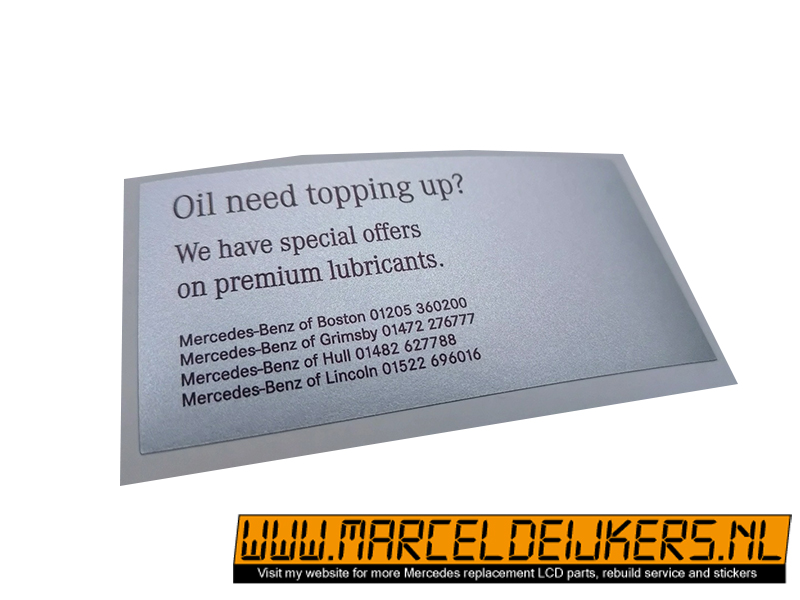This sticker has been reproduced in the same sizes, shapes and colors to match the old original one which is NLA at mercedes.