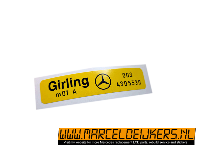 This sticker has been reproduced in the same sizes, shapes and colors to match the old original one which is NLA at mercedes.
