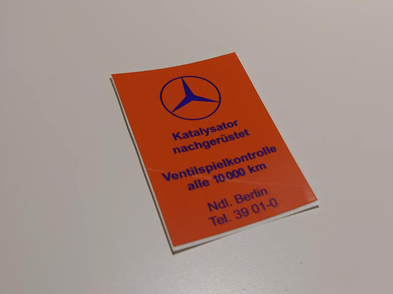 This sticker has been reproduced in the same sizes, shapes and colors to match the old original one which is NLA at mercedes.