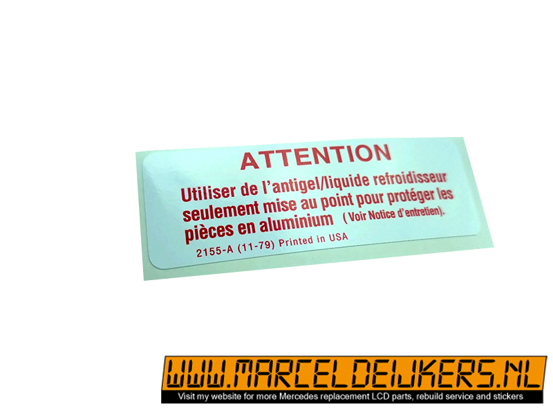 This sticker has been reproduced in the same sizes, shapes and colors to match the old original one which is NLA at mercedes.