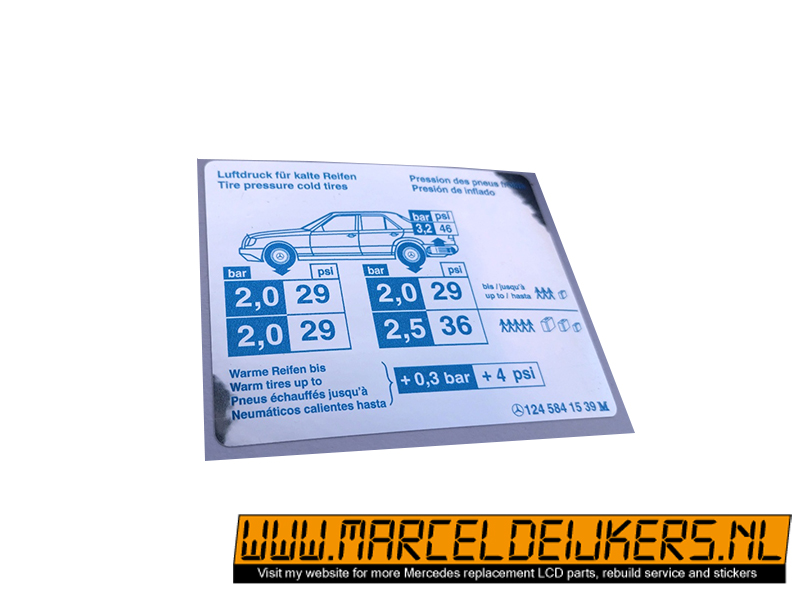 Sticker which replace the old sticker with partnumber: 1245841539 - 124 584 15 39 - decal Luftdruck für kalte Reifen
