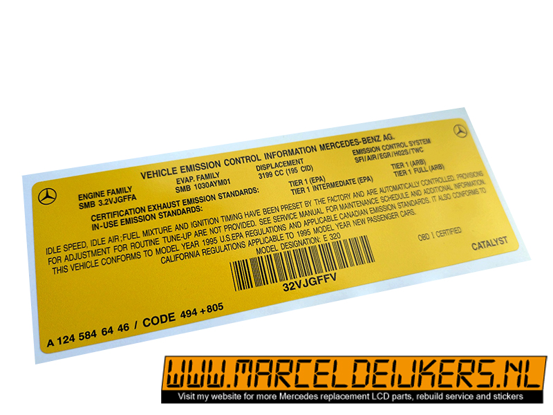 Sticker which replace the old sticker with partnumber: A1295846446 - A 129 584 64 46 Vehicle emission control information 124 E60 / 140 E60
