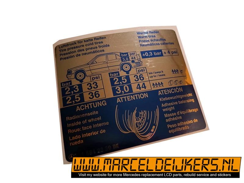 This sticker has been reproduced in the same sizes, shapes and colors to match the old original one which is NLA at mercedes.