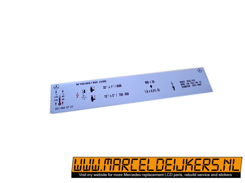 This sticker has been reproduced in the same sizes, shapes and colors to match the old original one which is NLA at mercedes.