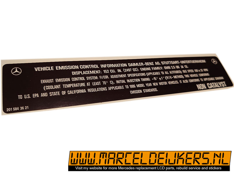 This sticker has been reproduced in the same sizes, shapes and colors to match the old original one which is NLA at mercedes.