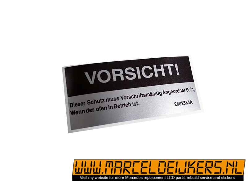 This sticker has been reproduced in the same sizes, shapes and colors to match the old original one which is NLA at mercedes.