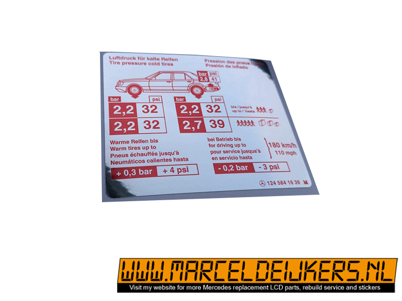 Sticker which replace the old sticker with partnumber: 1245841639 - 124 584 16 39 - decal Luftdruck für kalte Reifenn