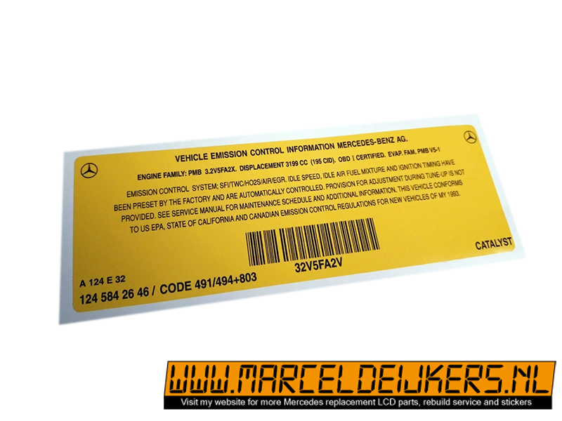 This sticker has been reproduced in the same sizes, shapes and colors to match the old original one which is NLA at mercedes.