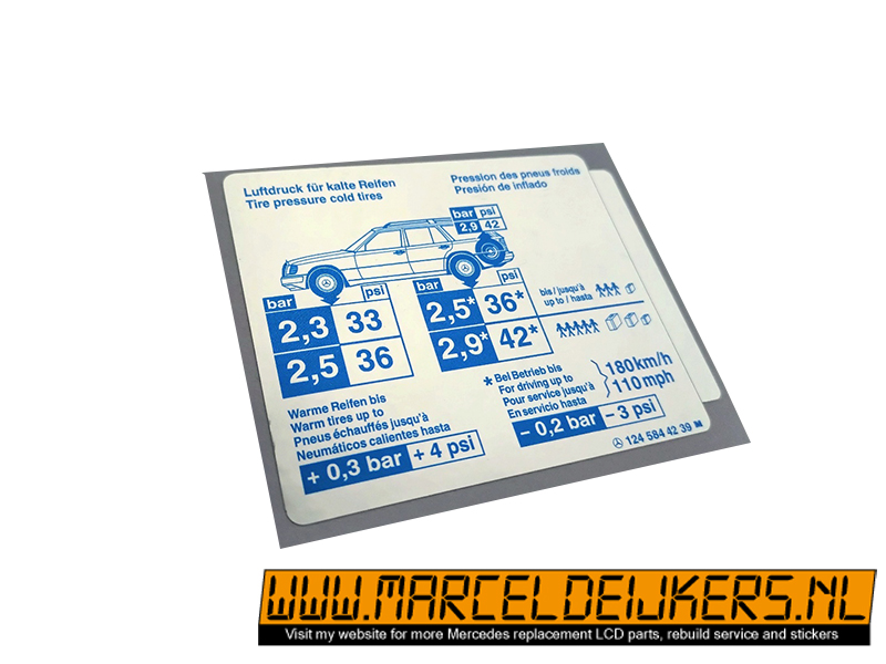 Sticker which replace the old sticker with partnumber: 1245844239 - 124 584 42 39 decal Luftdruck für kalte Reifen