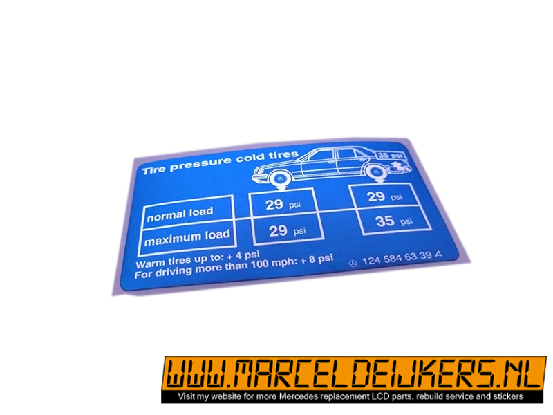Sticker which replace the old sticker with partnumber: 1245846339 - 124 584 63 39 decal Luftdruck für kalte Reifen