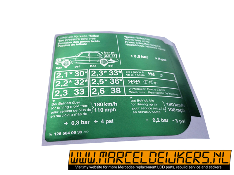 Sticker which replace the old sticker with partnumber: 1265840639 - 126 584 06 39 AWO decal Luftdruck für kalte Reifen