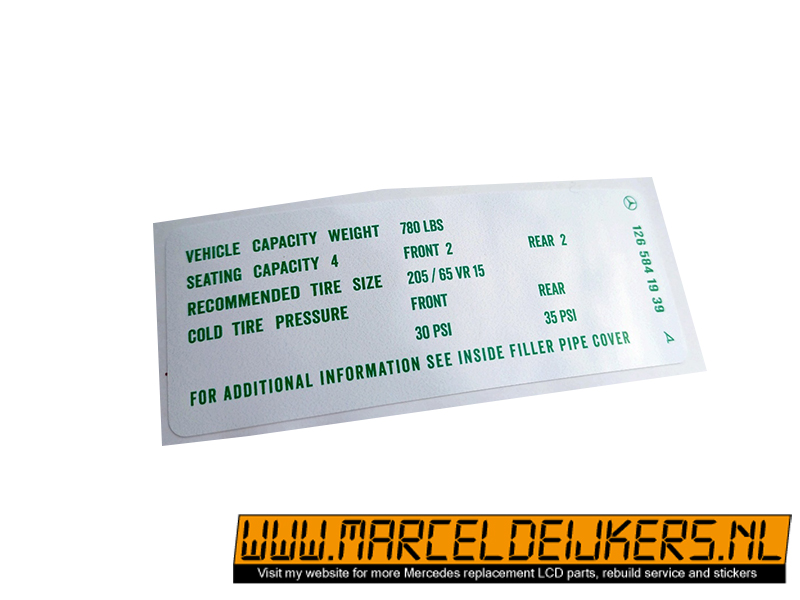 Sticker which replace the old sticker with partnumber: 1265841939 - 126 584 19 39 tirepressure