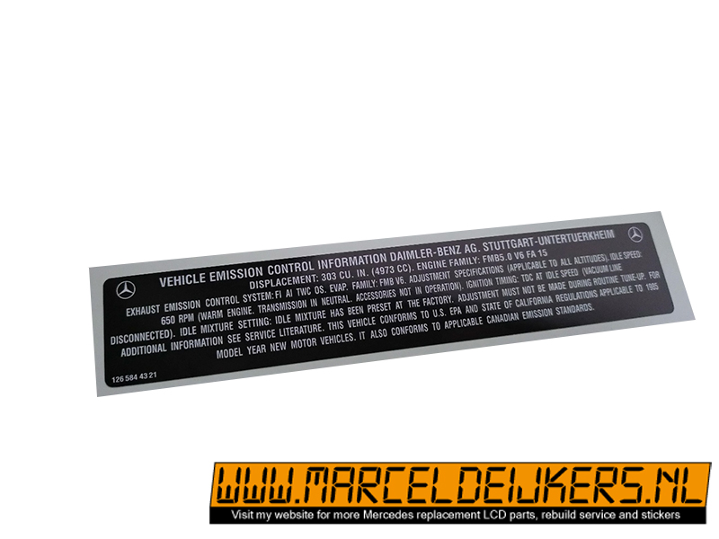 This sticker has been reproduced in the same sizes, shapes and colors to match the old original one which is NLA at mercedes.