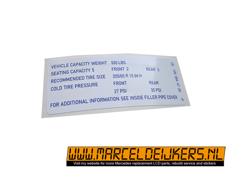 Sticker which replace the old sticker with partnumber:1265844739 - 126 584 47 39 tirepressure