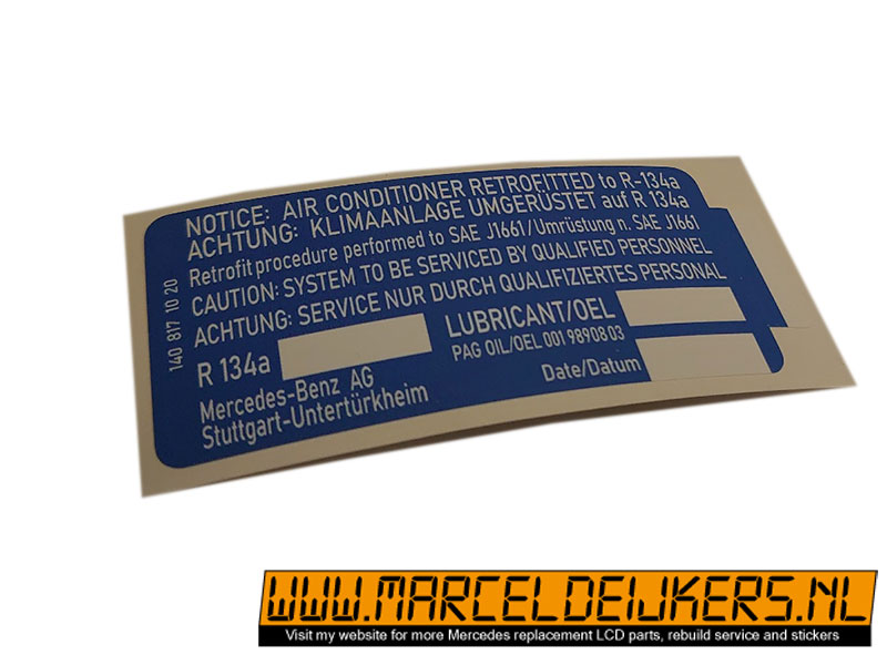 Sticker which replace the old sticker with partnumber: 1408171020 / 140 817 10 20 air conditionair retrofitted to R-134a