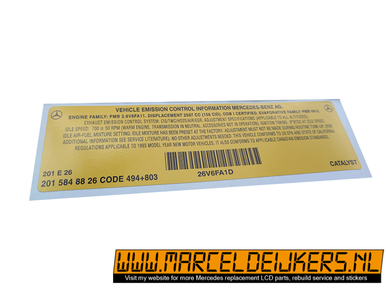 Sticker which replace the old sticker with partnumber: 2015848826 - 201 584 88 26 Vehicle emission control information 1993