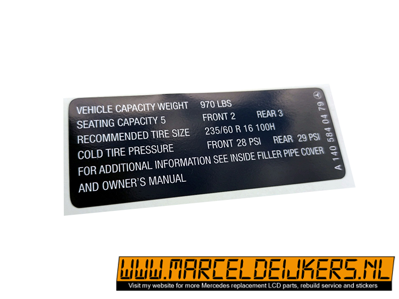 Sticker which replace the old sticker with partnumber: A1405840479 - A 140 584 04 79 tirepressure