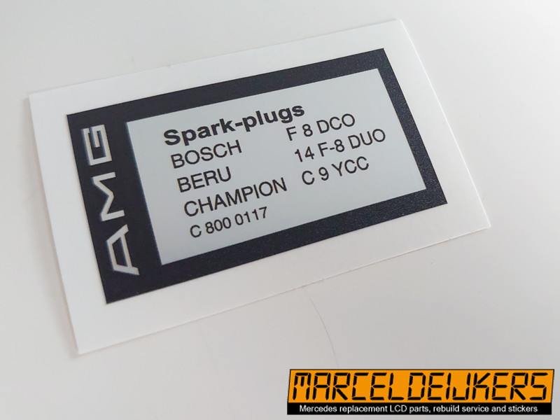 This sticker has been reproduced in the same sizes, shapes and colors to match the old original one which is NLA at mercedes. Its a black sticker with a matt finish with white letters