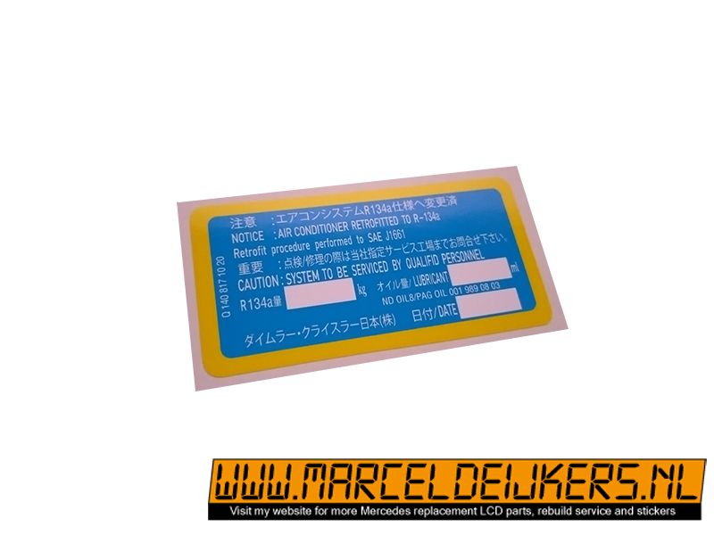 Sticker which replace the old sticker with partnumber: Q1408171020 / Q 140 817 10 20 Air conditioner retrofitted to R-134a