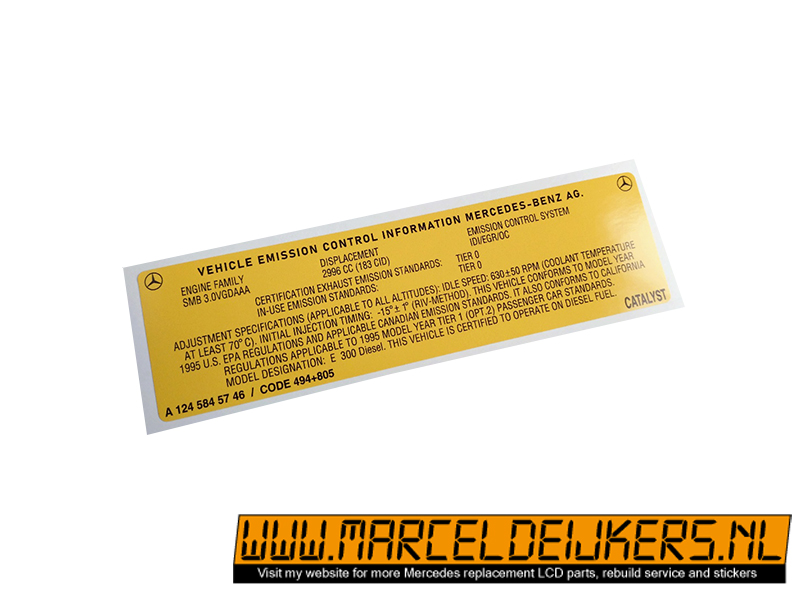 Sticker which replace the old sticker with partnumber: 1245845746 - 124 584 57 46 Vehicle emission control information E320