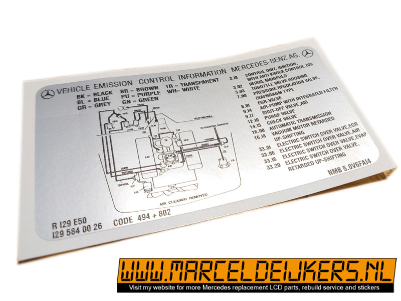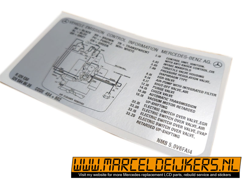 This sticker has been reproduced in the same sizes, shapes and colors to match the old original one which is NLA at mercedes.