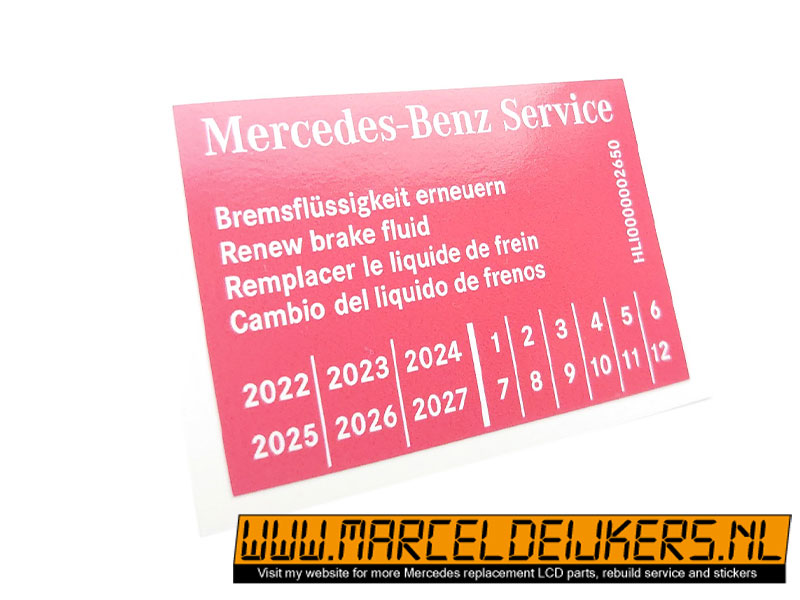 Sticker which replace the old sticker with text: Mercedes-Benz wartungssystem sticker: Bremsflüssigkeit erneuern 22-27