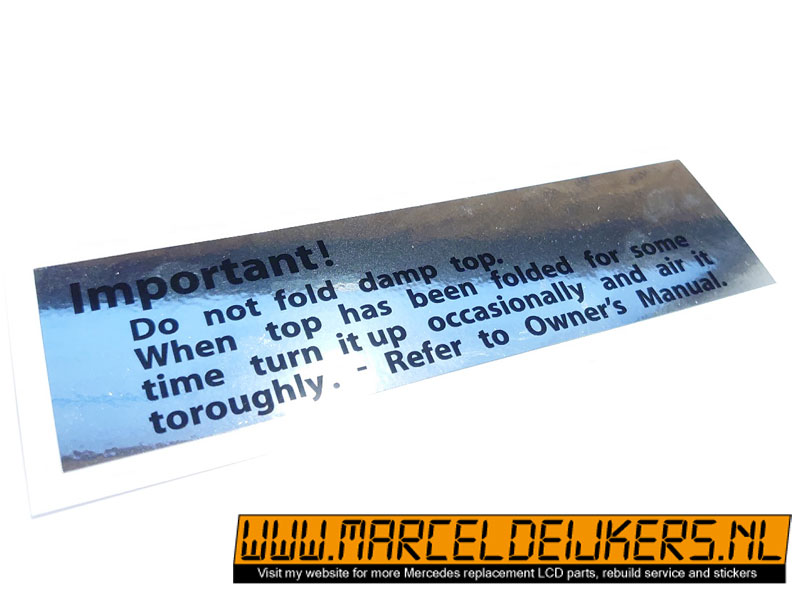 This sticker has been reproduced in the same sizes, shapes and colors to match the old original one which is NLA at mercedes.