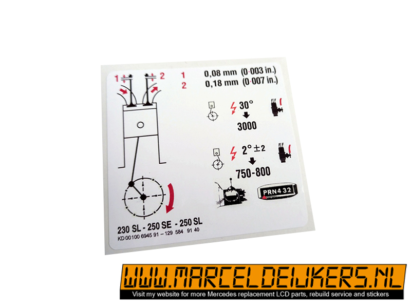 Sticker which replace the old sticker with partnumber: 1295849140 KD00100694591 for 230 SL - 250 SE - 250 SL