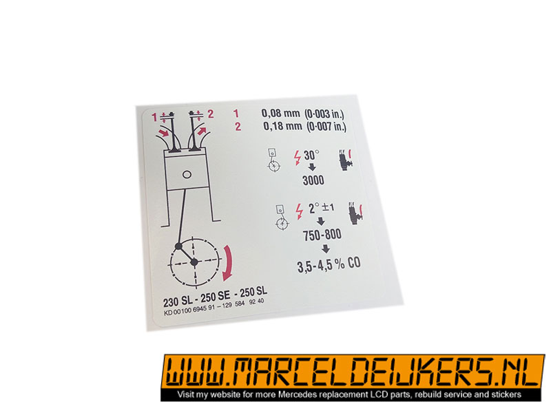 Sticker which replace the old sticker with partnumber: 1295849240 KD00100694591 for 230 SL - 250 SE - 250 SL