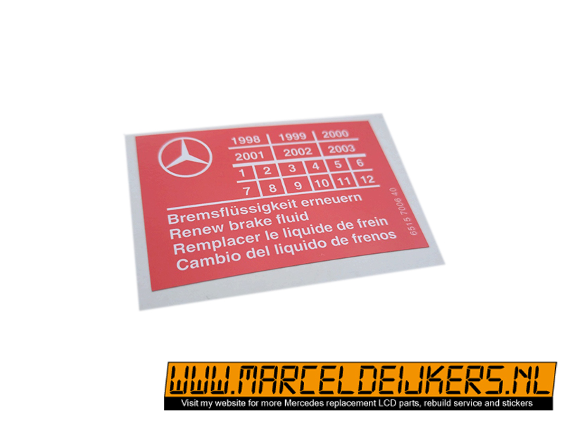 Sticker which replace the old sticker with text: Mercedes-Benz wartungssystem sticker: Mercedes-Benz Service Renew Brake Fluid 1998-2003 6515700640