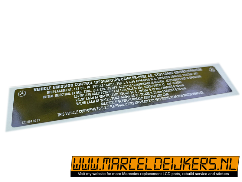 Sticker which replace the old sticker with partnumber: 1235848821 - 123 584 88 21 Vehicle emission control information 1980