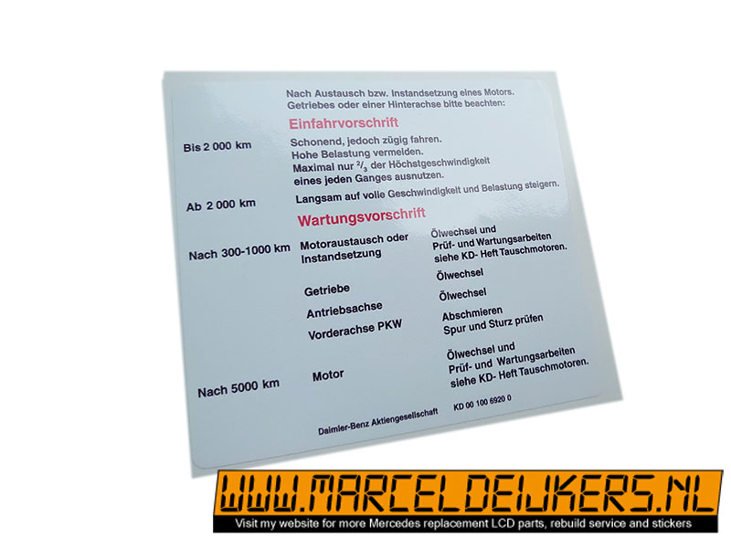 Mercedes einfahrvorschrift KD0010069200 aufkleber decal
