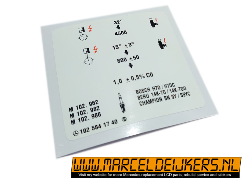 Mercedes engine information sticker with partnumber: 1025841740 - 102 584 17 40 for the engines: M102.962 - M102.982 - M102.986