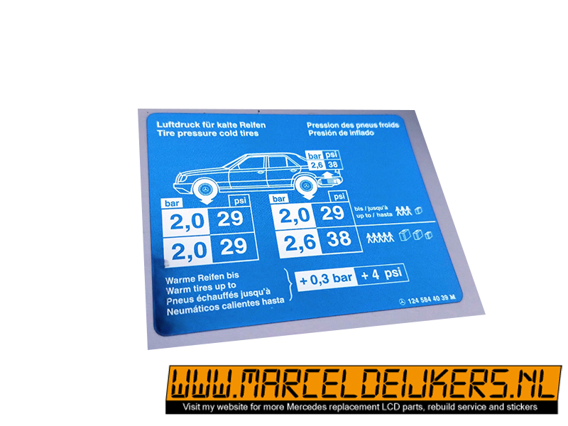 Sticker which replace the old sticker with partnumber: 1245844039 - 124 584 40 39 decal Luftdruck für kalte Reifen