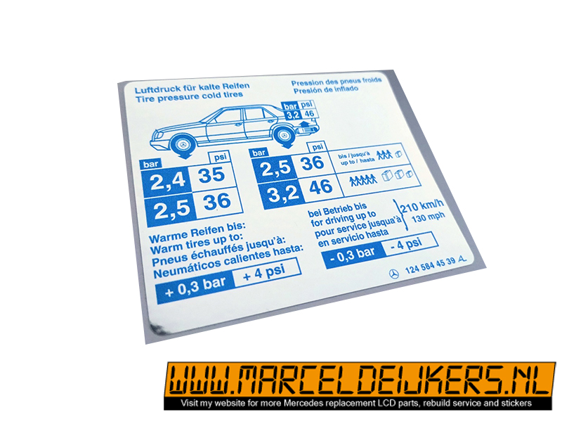 Sticker which replace the old sticker with partnumber: 1245844539 - 124 584 45 39 - decal Luftdruck für kalte Reifenn