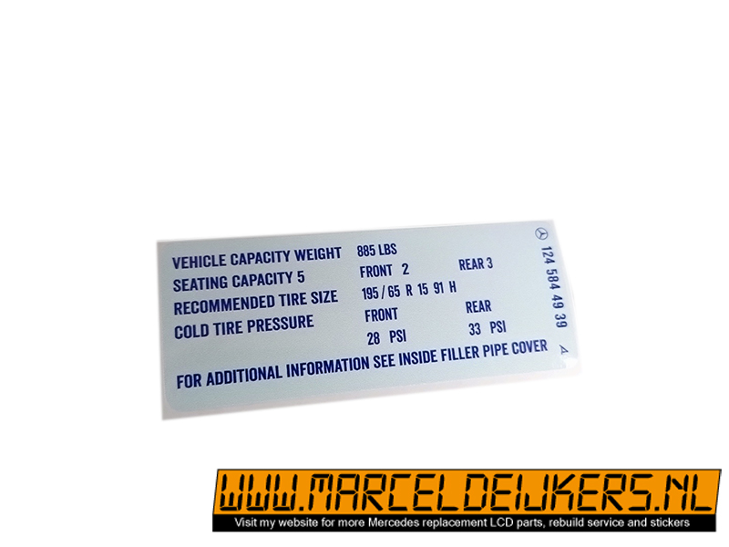 Sticker which replace the old sticker with partnumber: 1245844939 - 124 584 49 39 reifendruck sticker
