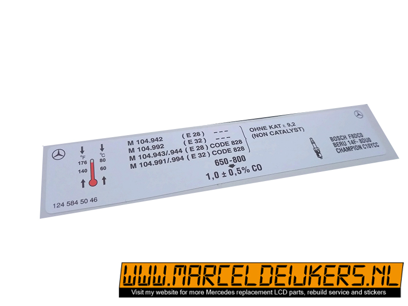 This sticker has been reproduced in the same sizes, shapes and colors to match the old original one which is NLA at mercedes.