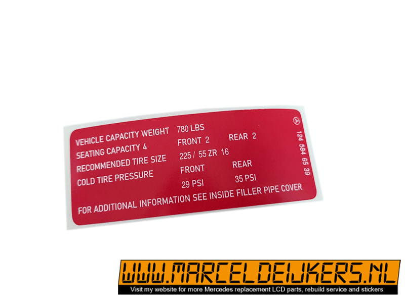 Sticker which replace the old sticker with partnumber: 1245846539 - 124 584 65 39 (500E) reifendruck sticker