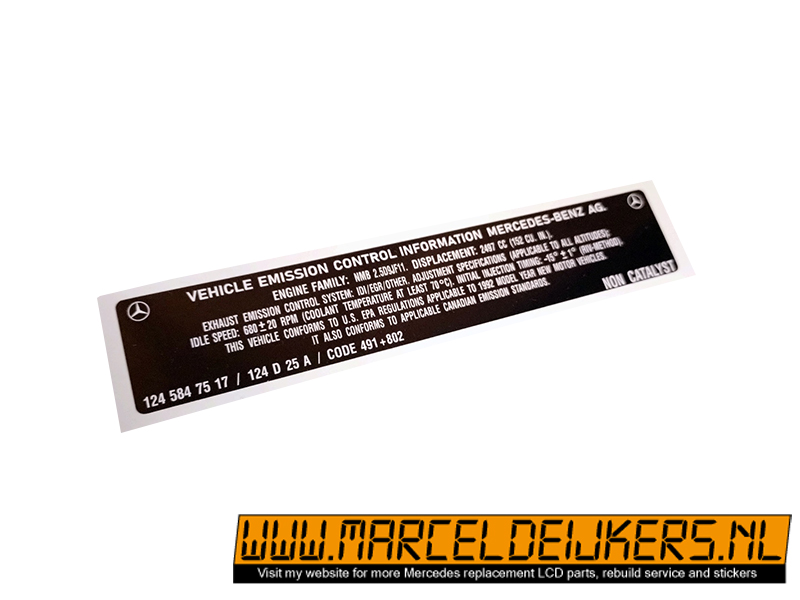 Sticker which replace the old sticker with partnumber: 1245847517 - 124 584 75 17 - 124 D 25 A Vehicle emission control information