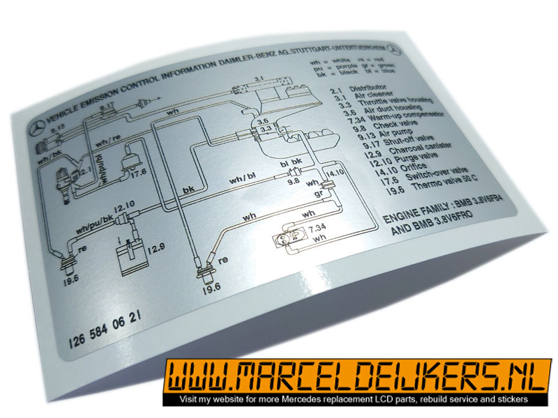 Mercedes Vehicle emission control information daimler benz. Partnumber: 1265840621 / 126 584 06 2 for engine family: BMB 3.8V6FB4 and BMB 3.8V6FRO