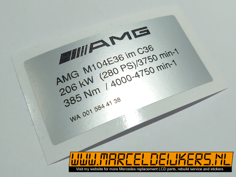 Sticker which replace the old sticker with partnumber: WA0015844138 - WA 001 584 41 38 - AMG M104 C36