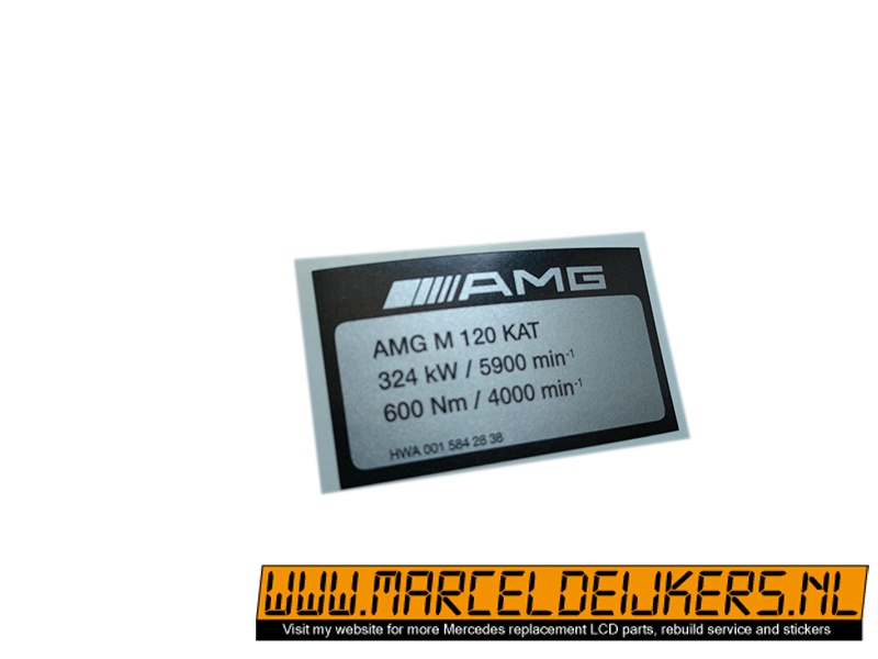 Mercedes-Benz AMG M104 E36 engine decal with partnumber: AMG M120 KAT HWA0015842838 / HWA 001 584 28 38