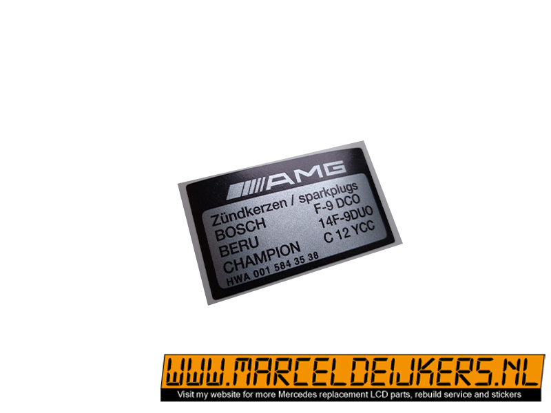 Mercedes-Benz AMG M104 E36 engine decal with partnumber: AMG ZUNDKERZEN SPARKPLUGS HWA0015843538