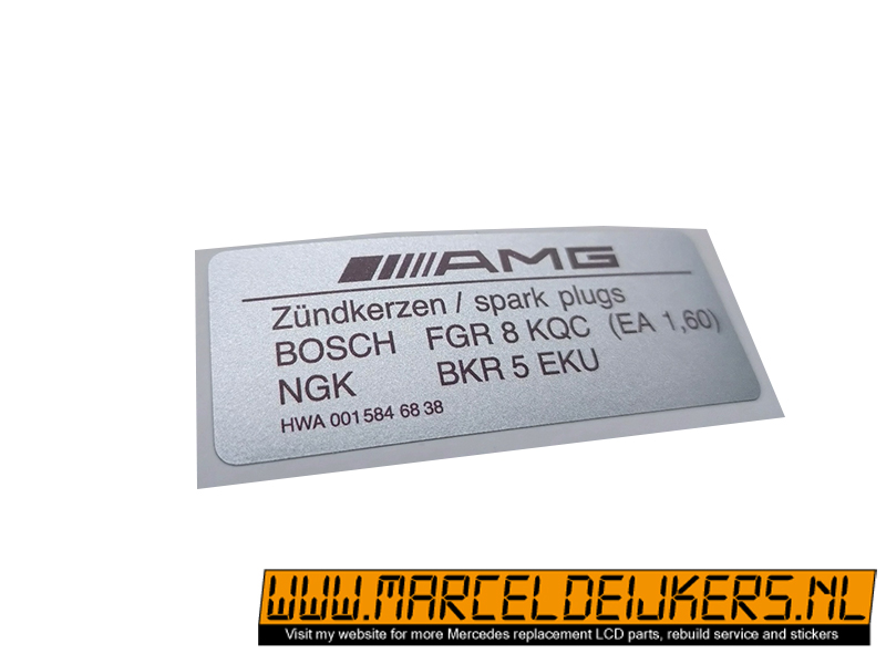 This sticker has been reproduced in the same sizes, shapes and colors to match the old original one which is NLA at mercedes. Its a black sticker with a matt finish with white letters
