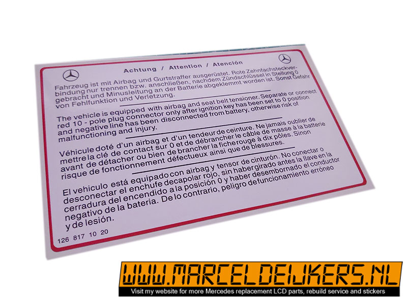 Sticker which replace the old sticker with partnumber: 1268171020 ACHTUNG ATTENTION ATENCION