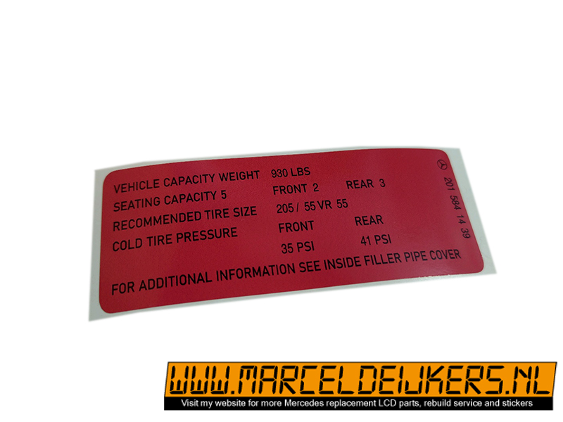 Sticker which replace the old sticker with partnumber: 2015841439 - 201 584 14 39 reifendruck sticker